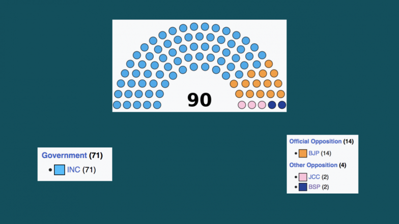 The seat of the Vidhan Sabha is at Sector 19, Atal Nagar, the capital of the state. The Vidhan Sabha comprises 90 Members of Legislative Assembly, which include 90 members directly elected from single-seat constituencies.[1] Its term is 5 years, unless sooner dissolved.